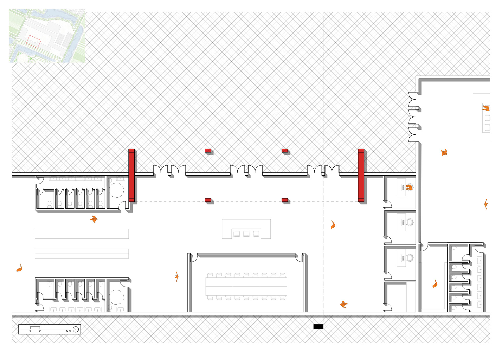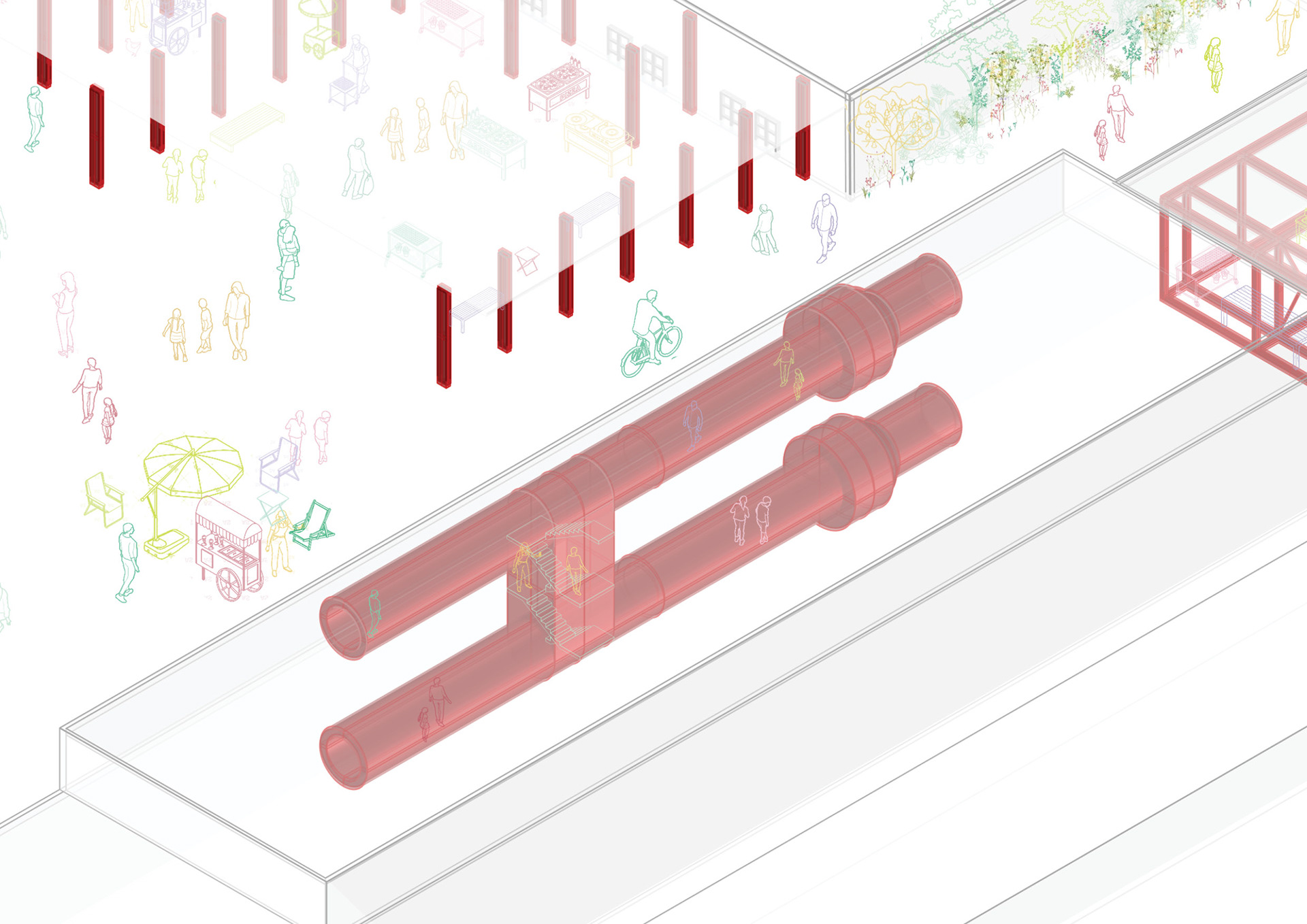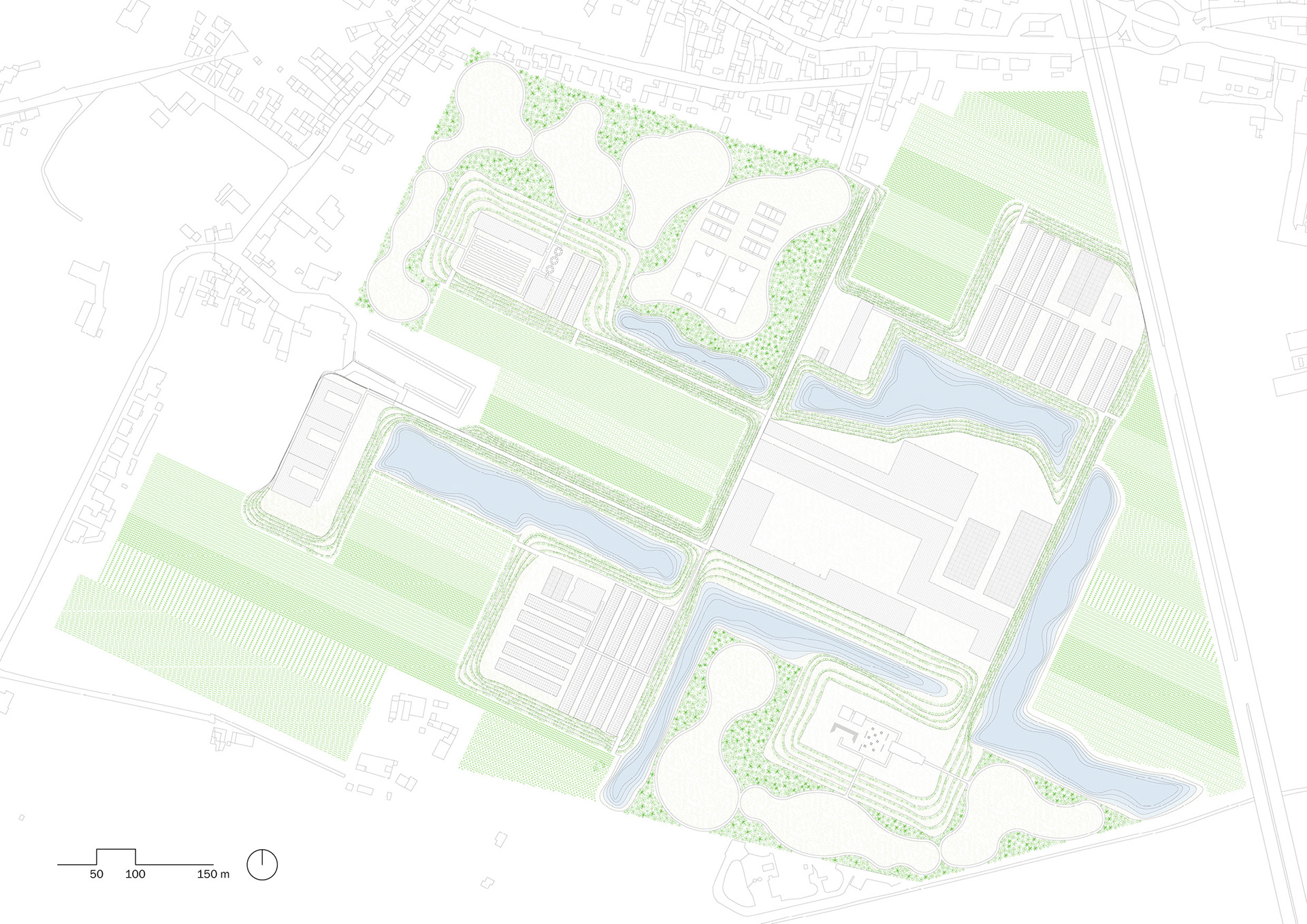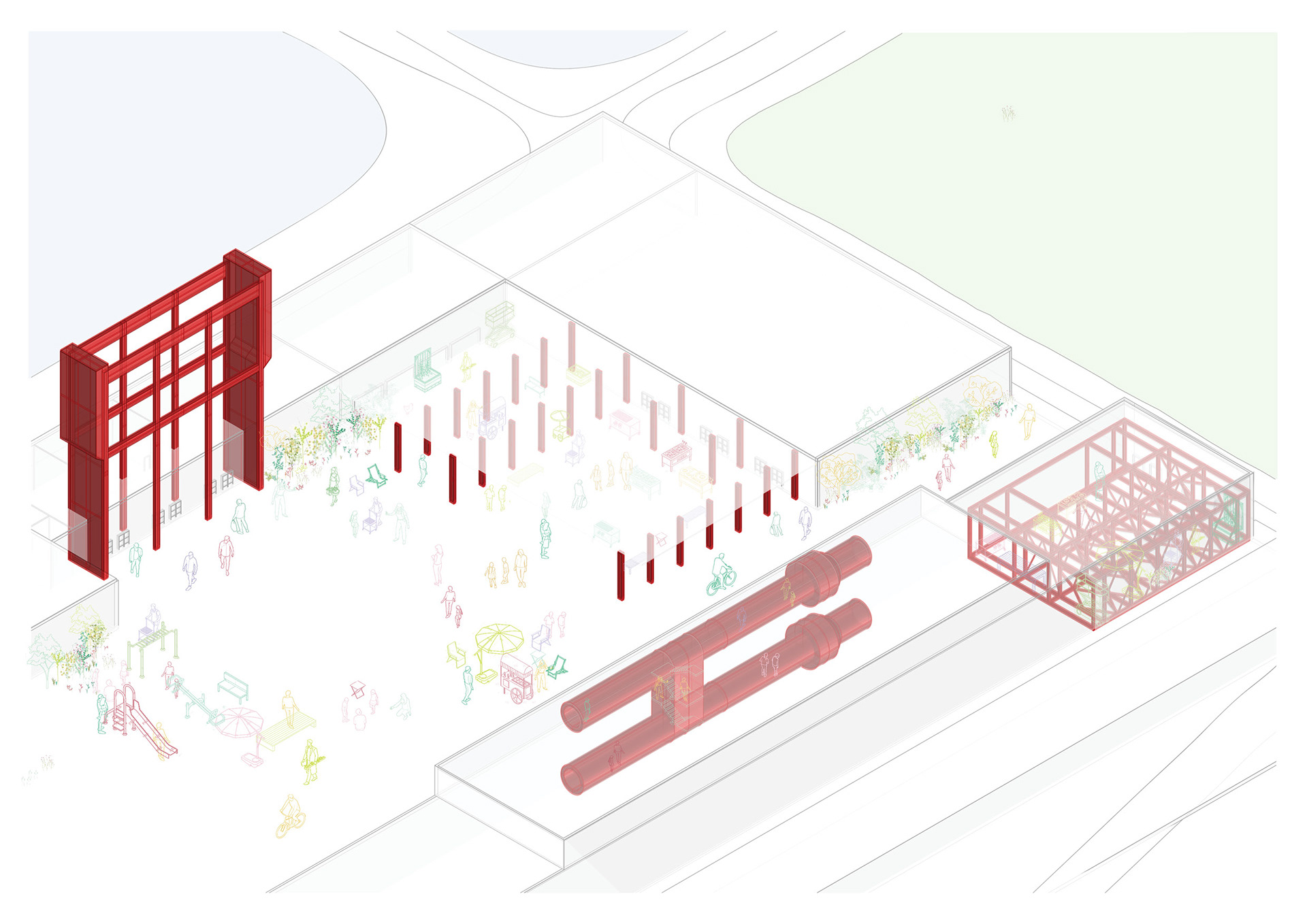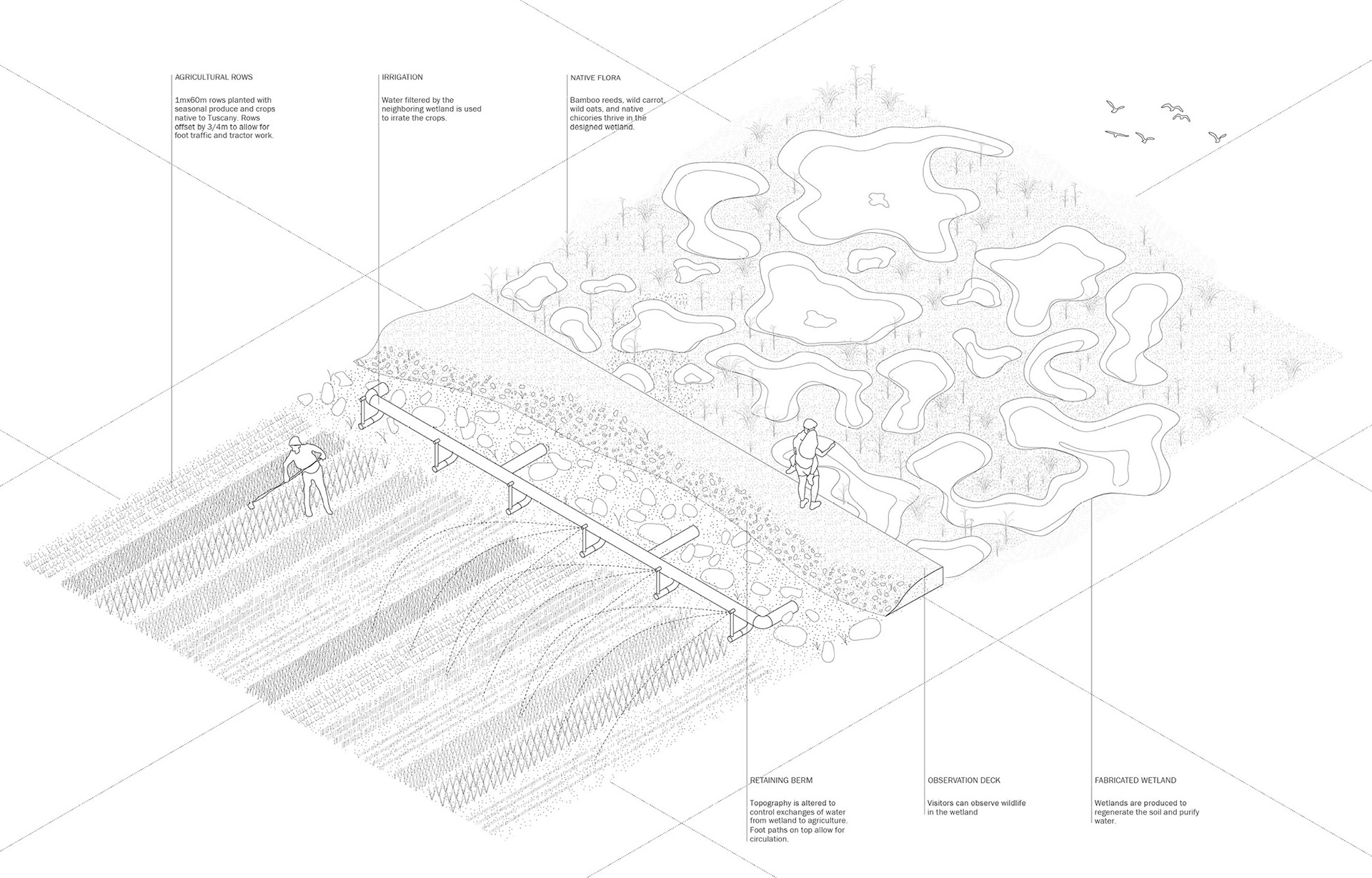 Located in San Donnino, just outside Florence, this project transforms a former industrial site once occupied by a trash incinerator--a symbol of long-term environmental impact and recent demolition--into a regenerative food hub rooted in the area's agricultural and wetland history. Organized around a central hub with several interconnected secondary hubs, the project supports regenerative farming and community life through shared resources including a community center, food hall, community kitchen, agricultural education spaces, greenhouses, and gardens.